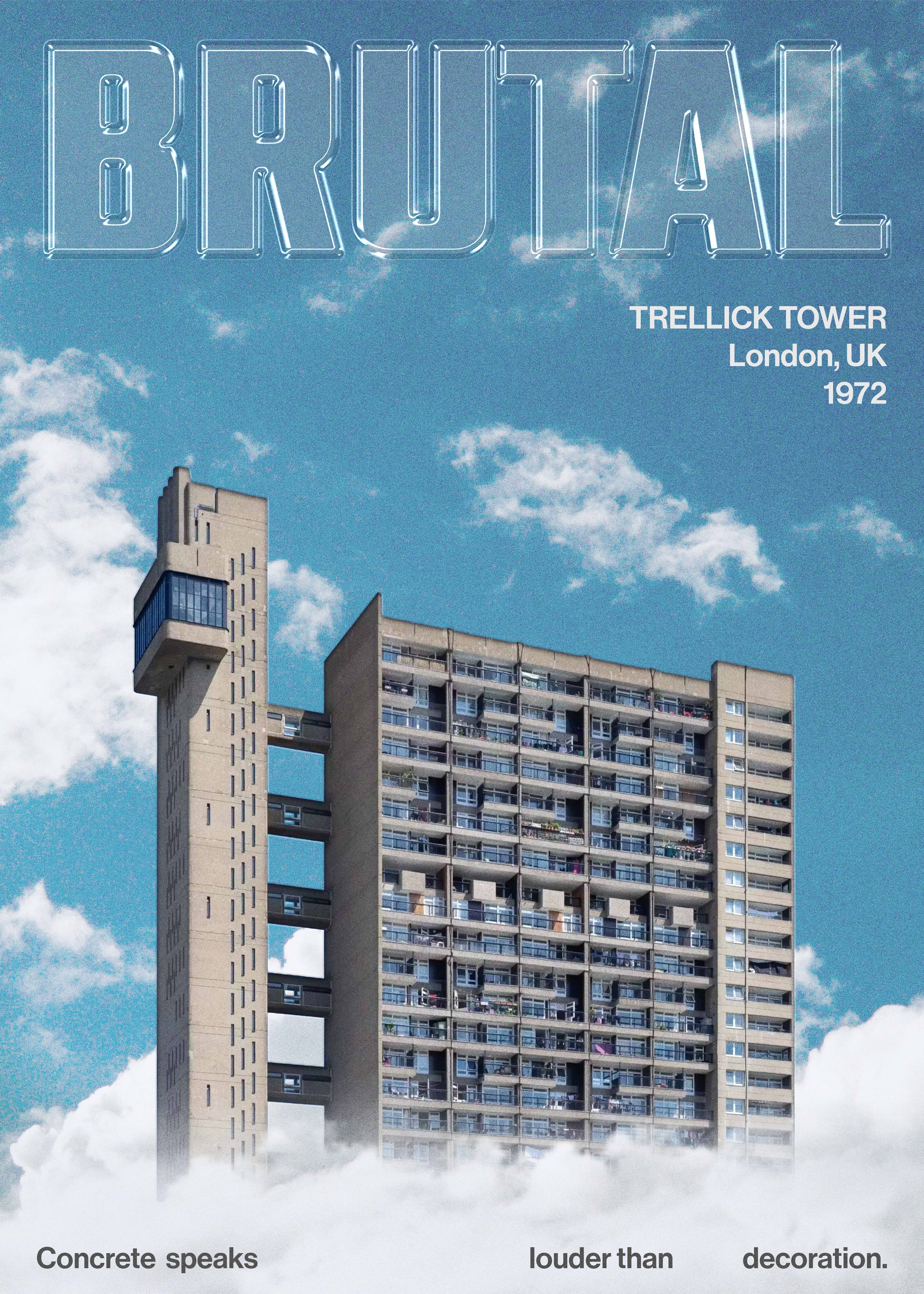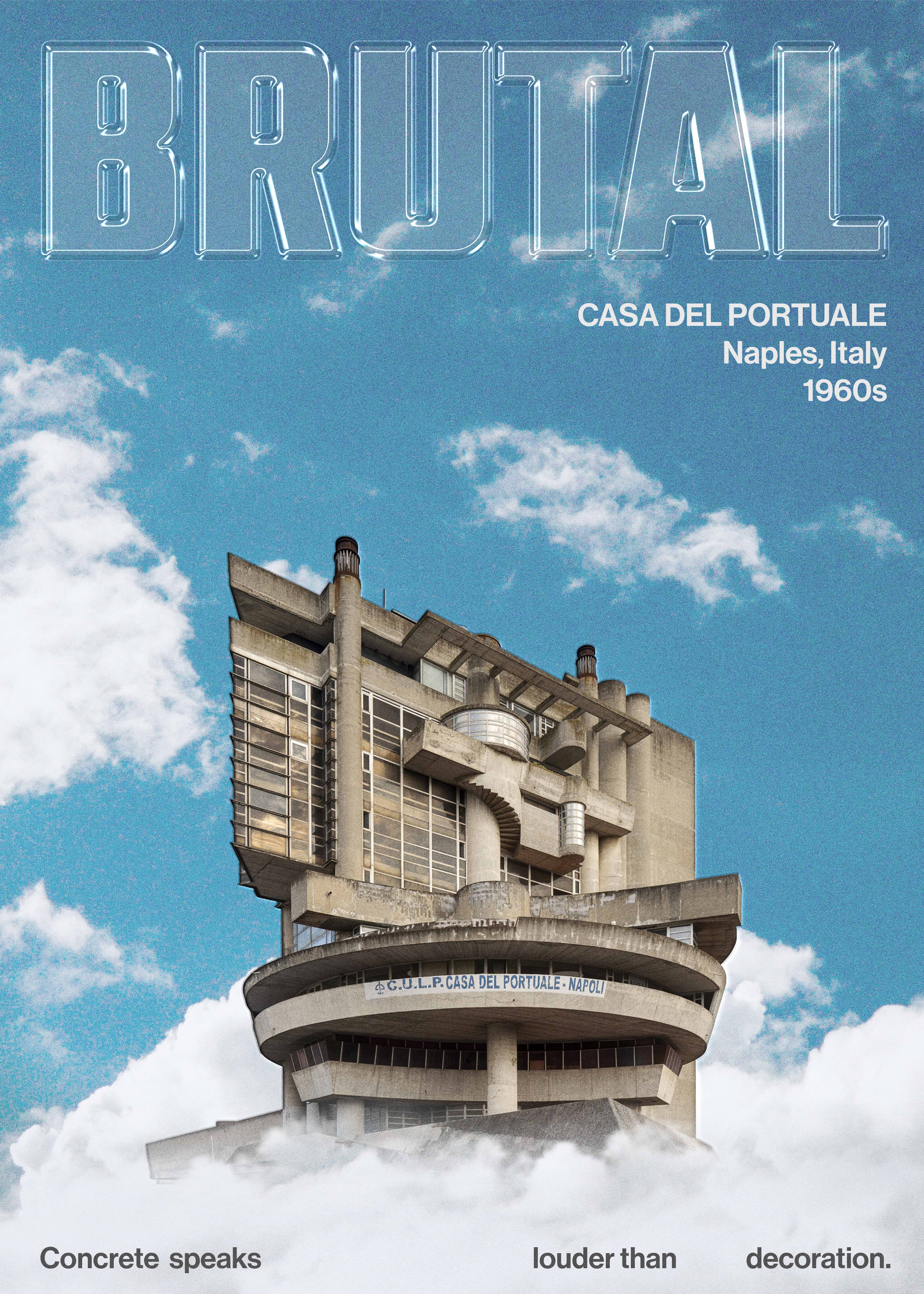 Home→Works→BrutalBrutalBrutalBrutalDescriptionA poster series focused on brutal architectureServicesServicesPoster DesignClientClientMert YenerYearYear2026