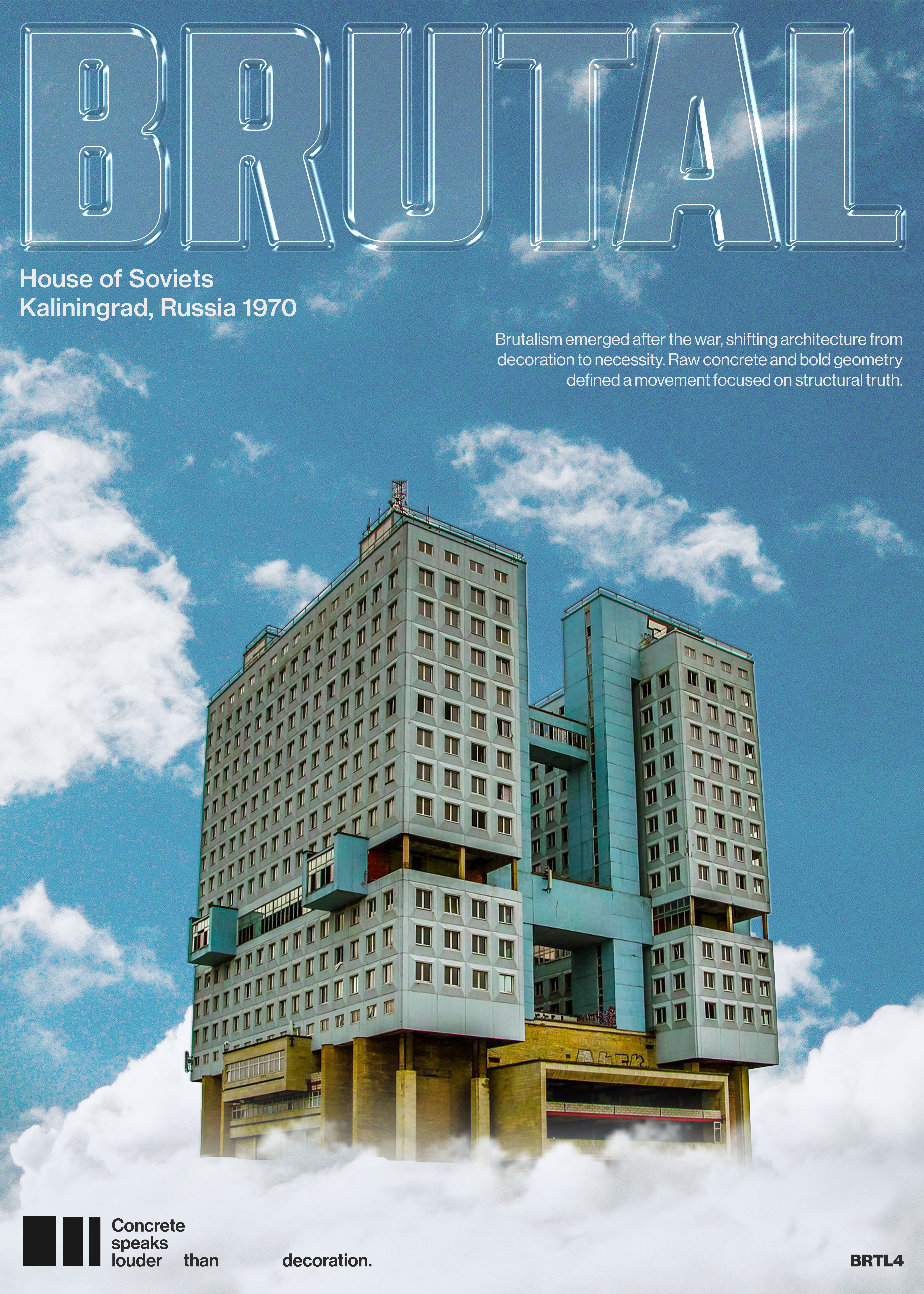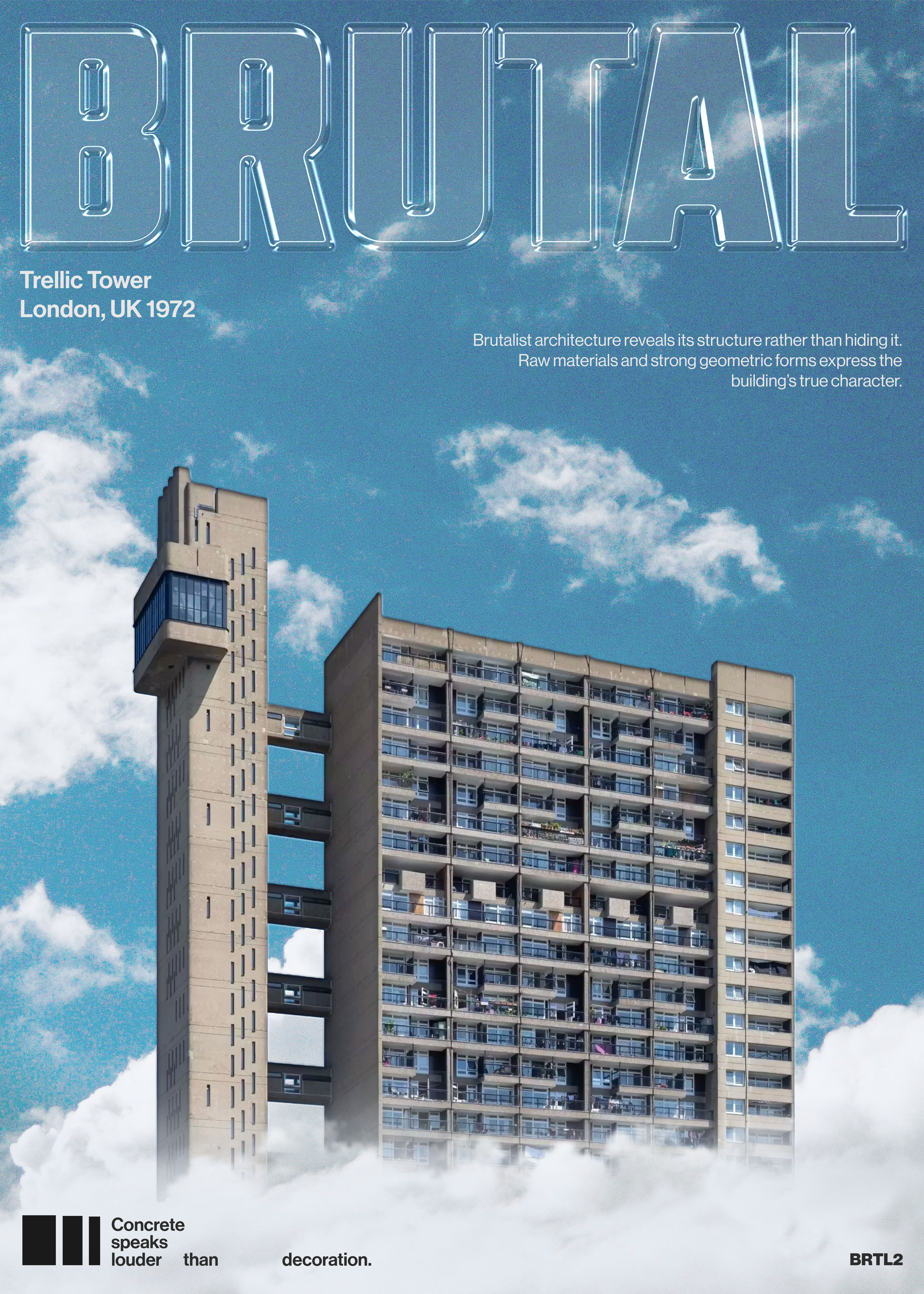 My interest in Brutalist architecture led me to create a series of posters explaining what Brutalist architecture is. In this series, I translated the raw, bold, and structural characteristics of Brutalist architecture into a graphic visual language.